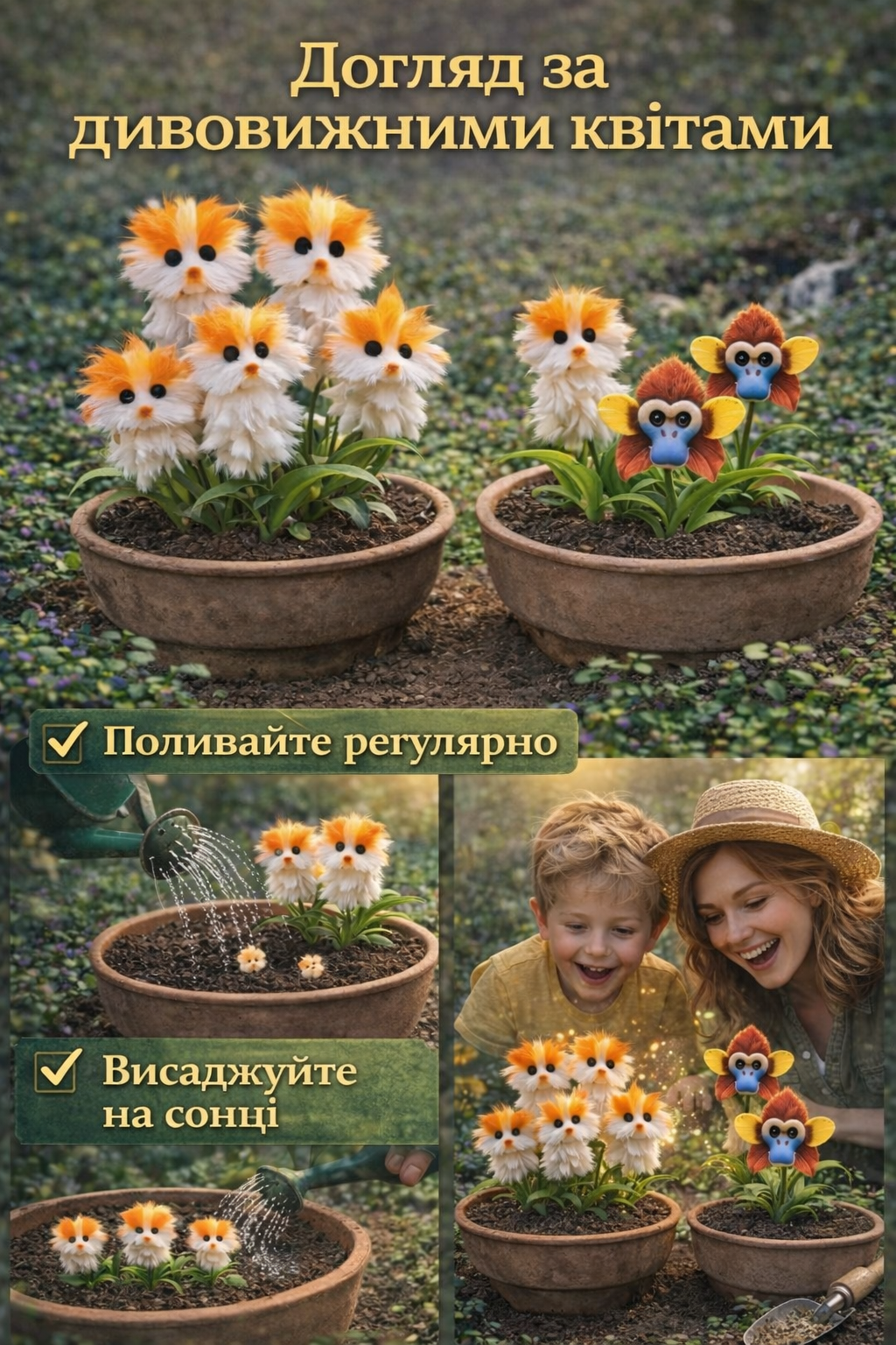 Дуже легке у догляді — ідеальний вибір навіть для початківців! Насіння «Дивовижні тварини» швидко проростає, не потребує складних умов і добре приживається. Достатньо регулярного поливу та базового догляду, щоб куточок природи активно розвивався та радував здоровим, яскравим виглядом. 🌱🦎🐞