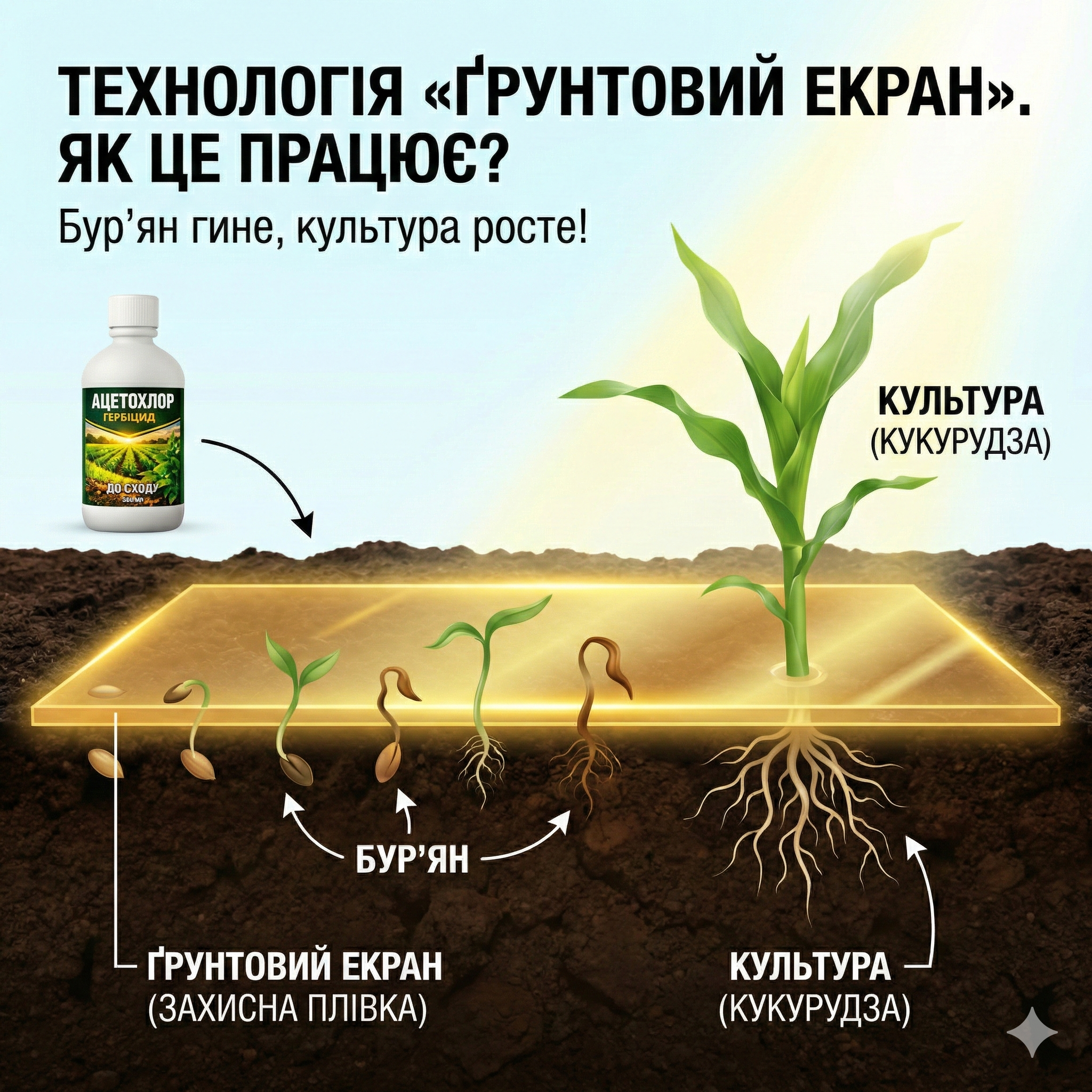Зробили все по інструкції: підготовка, норма, таймінг. У підсумку не довелося ганяти техніку по кілька разів. Поле виглядало акуратно вже на старті, без «лотереї», як раніше.