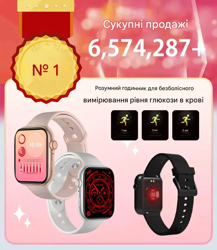 ⌚ Контролюйте рівень цукру без уколів – розумний годинник HealthWatch