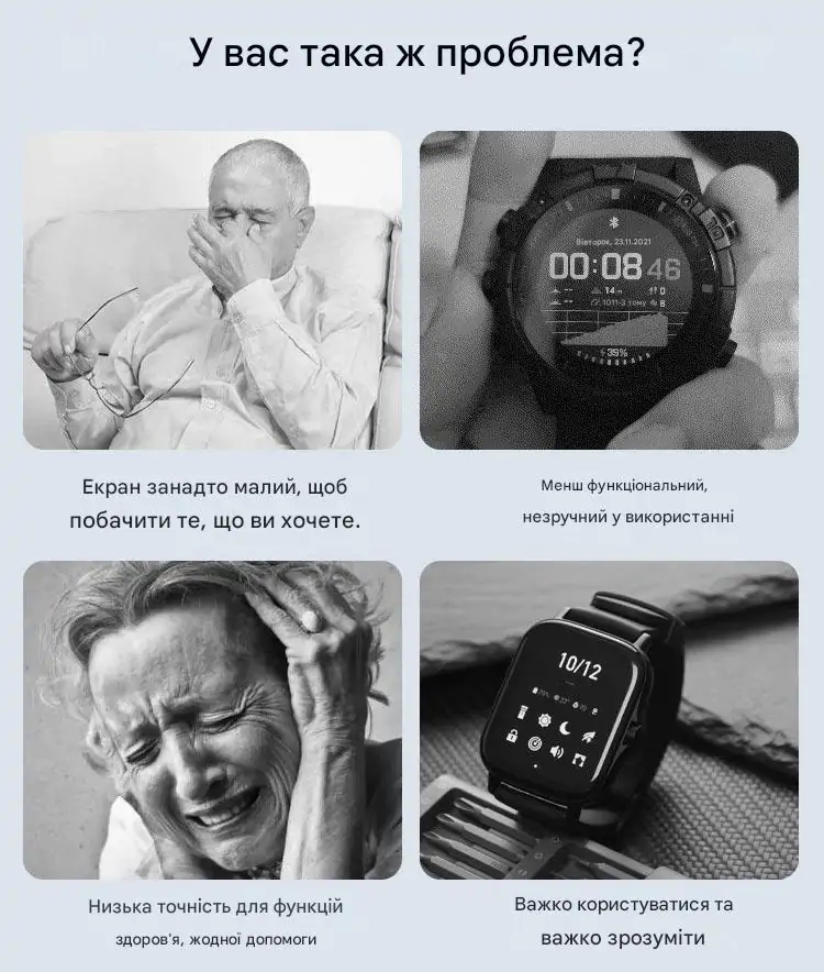 Забудьте про незручні та неточні гаджети. Наш годинник створений, щоб дійсно допомагати, а не просто показувати час