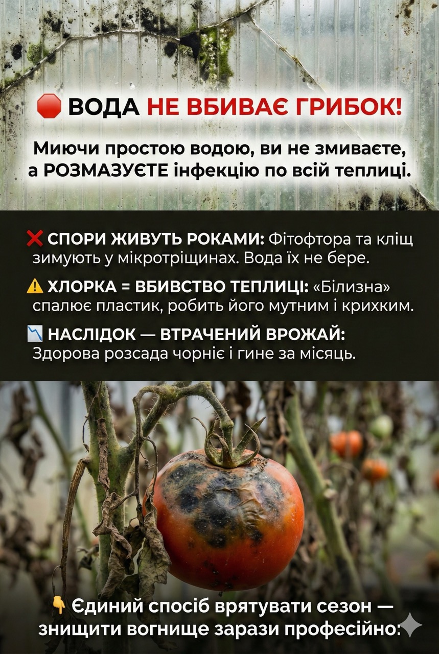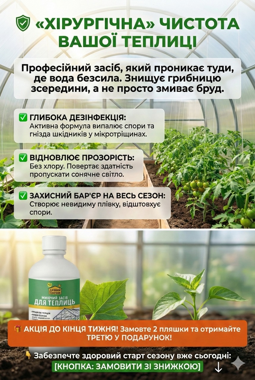 Чистка теплиці завжди відкладалась через складність, але з цим засобом усе змінилось. Без щіток, без довгої мороки — бруд і грибок просто змиваються. Швидко, безпечно і з відчуттям реальної користі для врожаю.